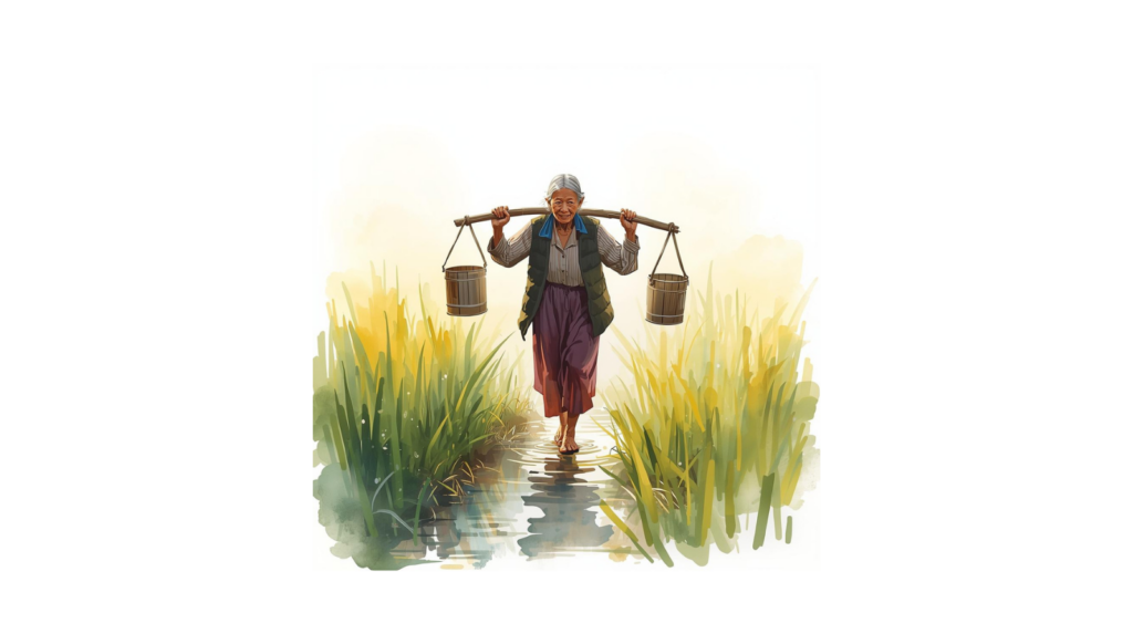 Es war einmal eine alte chinesische Frau, die zwei große Schüsseln hatte,
