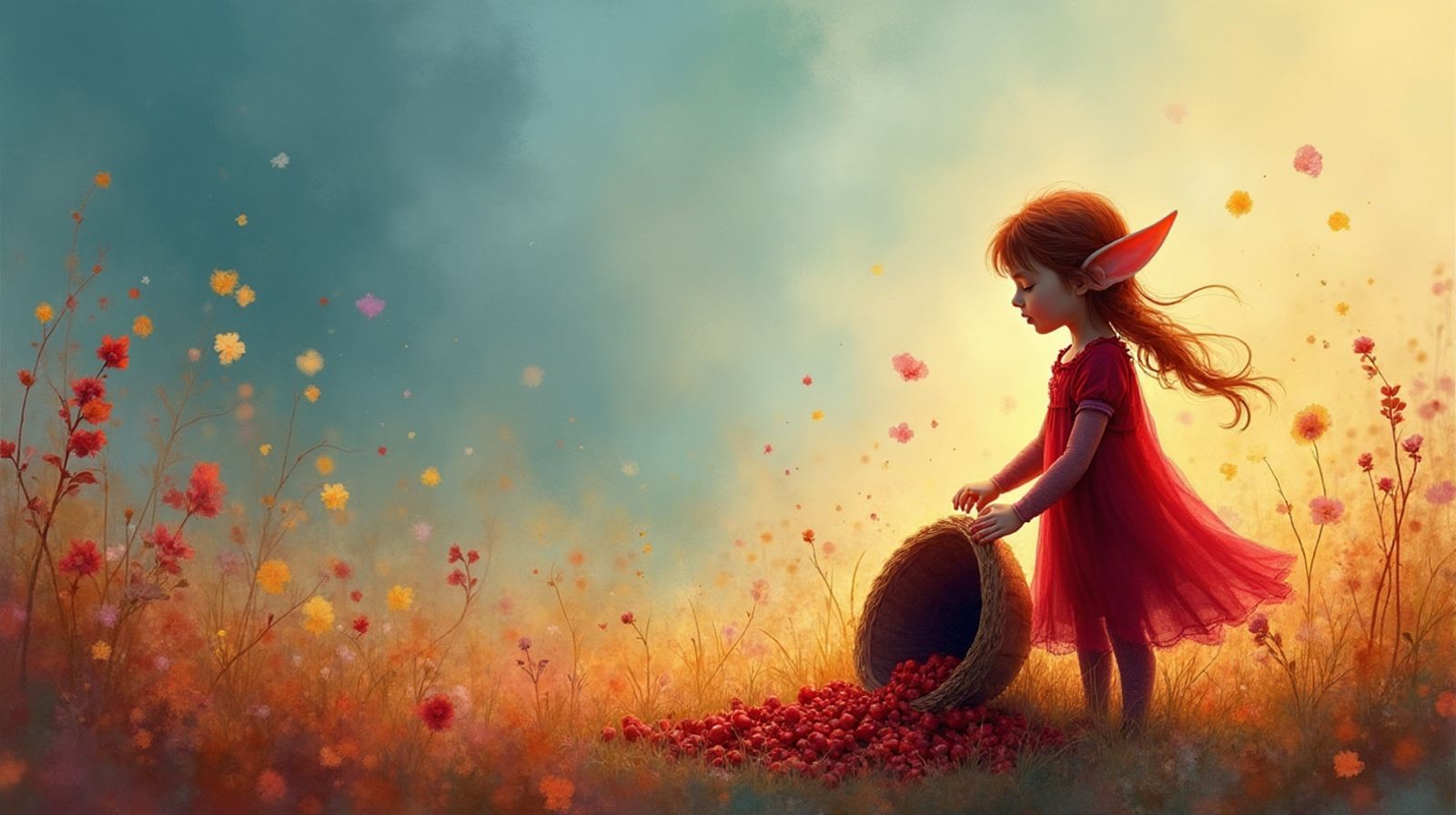 Sein Plan war fertig! Ja genau so ging es! Ma Erde würde staunen. Er bedankte sich mit vielen, vielen Purzelbäumen bei den Tautropfenblütenköpfchen auf der bunten Wiese. Sie waren schon tolle Freunde. Schon öfter haben sie ihm, in ihre Tautropfenspiegel sehen lassen. Aber heute, das war die Krönung, von allem bisher erlebten. Er konnte es kaum abwarten, bis Ma Erde wieder Zuhause war.
