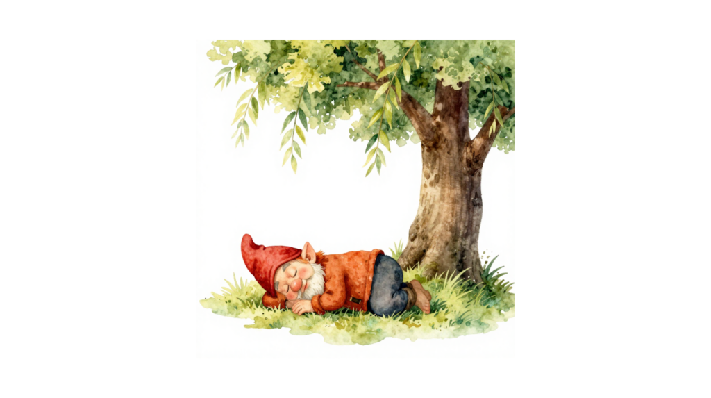 Traurige Zwerge werden müde und passen nicht auf, was um sie herum geschieht. Er war so mit seinem Leid beschäftigt, dass er nicht wahrnahm, dass alle Tiere seinen Wald verließen.